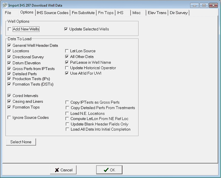 Govern whether the importer adds new wells, or updates selected wells already in the project database.