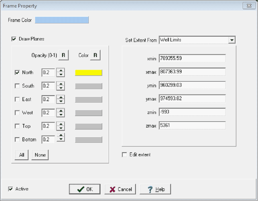 This dropdown sets the extents of the frame from either the currently selected well limits, or by the limits of the data currently displayed.