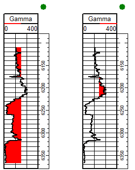 The Cutoff tab controls how a log is shaded relative to a cutoff value. This tab sets the color for the log trace as well as the cutoff shading underneath the log trace.
