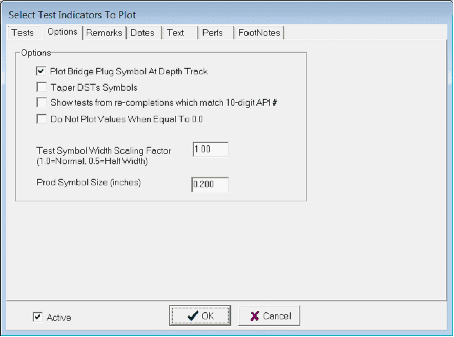 By default, Petra plots bridge plugs in the same track and relative position as perfs. This option overrides the position of the perfs and instead plots bridge plug symbols at the depth track.