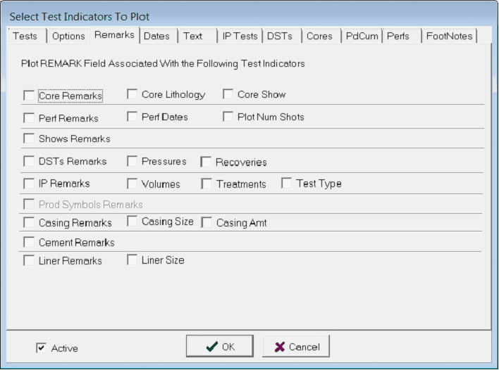 The Remarks tab adds remarks for the selected tests. Options for tests not selected on the Tests tab will be grayed out.