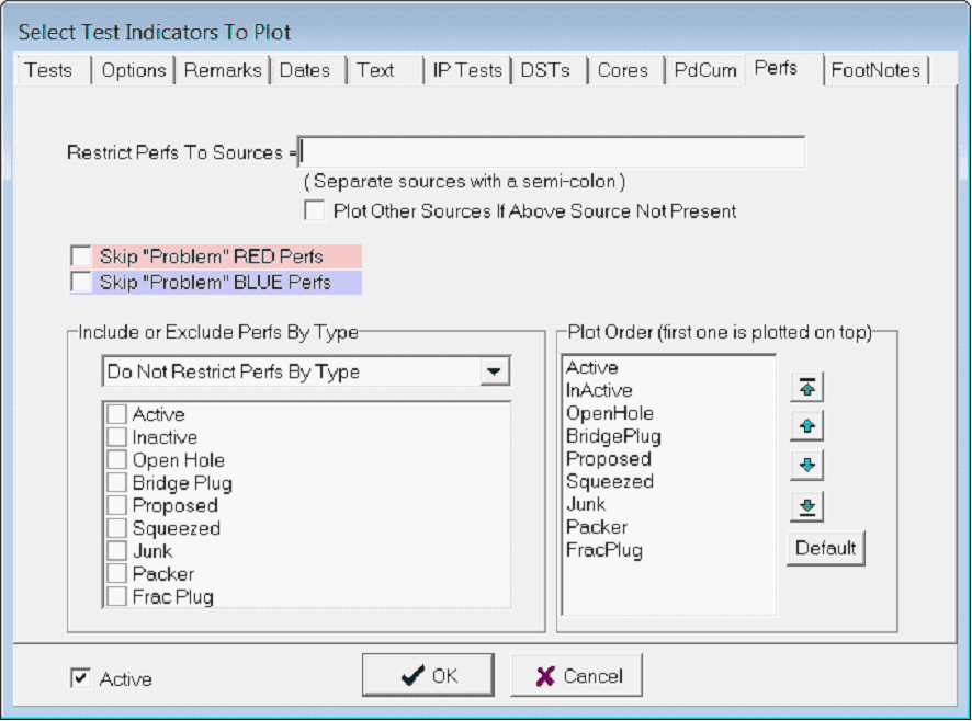 - Include the Selected Perf Type - This option will include only the perfs selected on the Perf Type List below. Only the checked perf types will plot.
