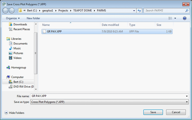 To delete a drawn polygon, select the polygon with the mouse as outlined above. Once the polygon is highlighted, right click and select Modify Polygon. Alternatively, select Polygons>Modify from the menu bar at the top of the screen with the polygon is highlighted. This opens the Polygon Definition box. Select the Delete Polygon button on the bottom of the box. Loading and Saving Facies PolygonsClosing the Log Crossplot Module erases the polygons from Petras memory, so make sure to save the polygons to a file. Additionally, this file will be used later to create facies curves. Select Polygons>Save from the menu bar at the top of the screen. Create a name and select the save button.