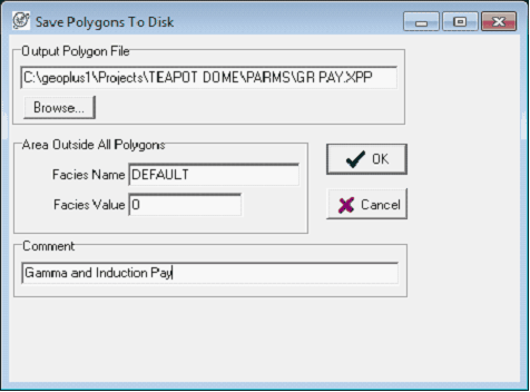 On the Save Polygons to Disk box, the area outside the polygons name and value can be modified. By default this area is named DEFAULT and its value is zero. This screen also allows for a comment to better describe the polygons.
