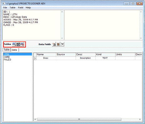 An interval data table stores interval data in a spreadsheet, where each interval is stored as a separated row. Since every interval row in the table shares the same fields (as columns), it's a good idea to keep different types of data in different tables. To create, modify, or delete tables in a Petra project:Click the Maintenance button