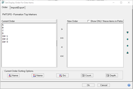 Formation Tops and Zone data items can be displayed in a preferred order rather than the default order in which the data fields were defined.