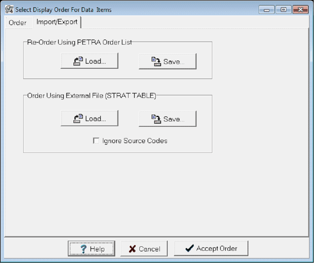 Only show items listed. Never show others - By default, Petra will show the data items on the New Order list first, followed by all other data items in the zone. This option instead restricts the data items in Petra to ONLY the items on the New Order list. Items not on the New Order list will never show up elsewhere in Petra.