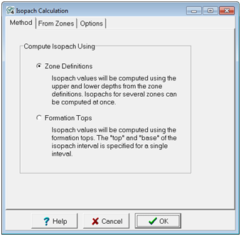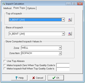 Formation Tops - This option calculates isopach thicknesses using two formation tops. This method can only calculate the thickness of a single interval at one time.