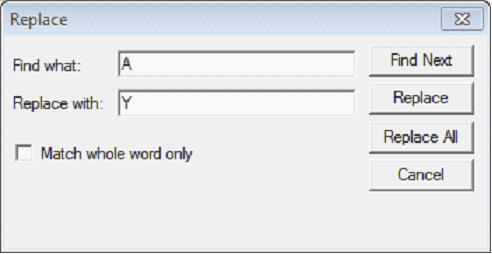 Find and ReplaceThe find option can search the current column for a specified value. Values in the current column may be replaced using the same option. Set the current column by clicking any data cell of the desired column. The find and replace functions search downward from the current data cell. To apply a Find and Replace, select the