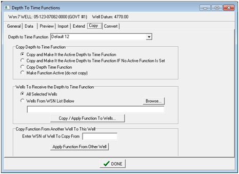 Copy tabThe Copy tab copies a Depth-To-Time function