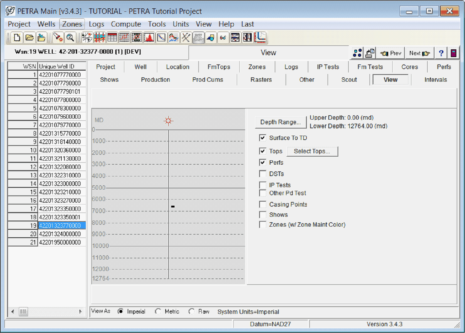 The Well tab displays and modifies information about the selected well on the well list. Typing a value in the appropriate entry field will change that field.