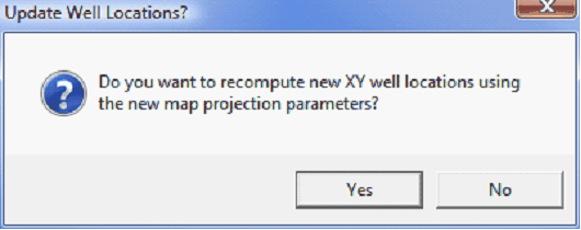 1. Select Yes when asked to recompute XY well locations using the new map projection.