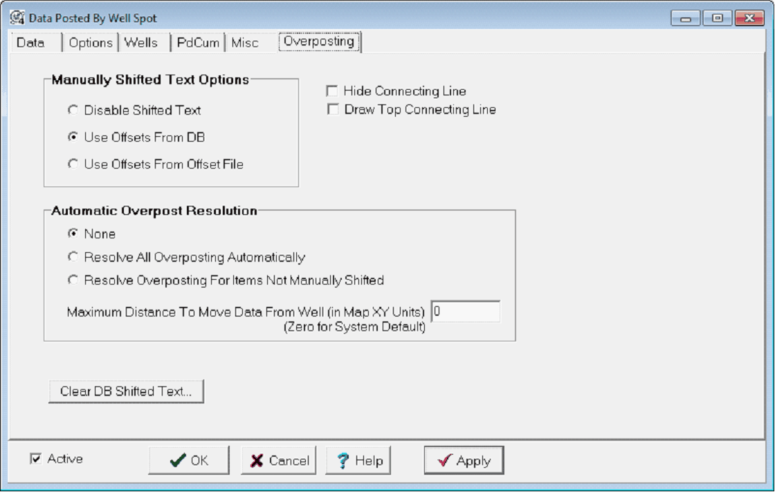 The Data Posting Overposting tab controls how well data is posted around the well symbols on the Map Module. To open the Data Posting tool, select the