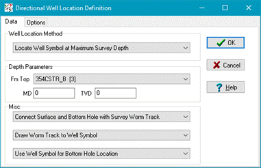 When the Formation Top Depth Well Location Method is used, you may select to spot the well symbol associated with the formation top instead of the normal well symbol.