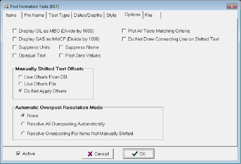 To open the Post Formation Tests tool, select Options>Post DSTs.