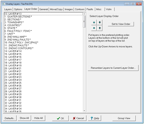 - This button resets the view order to reflect the layer order. As an example, this will move layer 1 to the top of the list, layer 2 to second place, and so on.