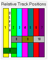 Track positions relative to the well symbol (above the "DEPTH" track)