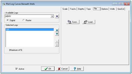 The Plot Log Curves Beneath Wells File tab