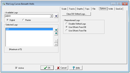 The Plot Log Curves Beneath Wells Options tab