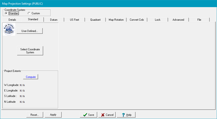 After changing the coordinate system and the project's map projection, you should also convert the auxiliary files using the Advanced tab. |