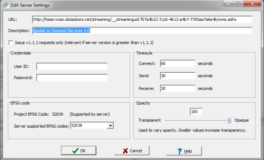 Adding a WMS Server1.Access the WMS Imagery Settings dialog box: ·Menu navigation, Map Module: Display > WMS Imagery Settings ·Clicking the blue wrench icon 2.Click the Add button below the Server list and select either: ·Add from List Displays list of WMS servers in WMS section of Petra.INI (Shared Mode) or GEOPLUS.INI (Private Mode) file. ·Add NewDisplays the Web Map Service dialog box. Using the Map Service dialog box you can: ·Click on the Get Spatial Energy button to add a WMS server provided by IHS Petra partner Spatial Energy. See"Image Layer Thumbnails" below. ·Enter a URL directly. IMPORTANT: WMS server URL's end in a ?, it may be necessary to delete text past the question mark from the end of a provided URL. http://www.earth.com/ecwp/ecw_wms.dll?request=GetCapabilities&service=wms should be: http://www.earth.com/ecwp/ecw_wms.dll? 3.Click OK. Image Layer ThumbnailsAdding a WMS server using the Add New option will populate the Web Map Services dialog box with thumbnail images once the WMS server is contacted. To select layers, click on a thumbnail once. Selected layers will be indicated with a yellow border. When all the desired layers are selected click OK . WMS server settingsAvailable WMS server settings include: ·Server URL ·User defined description ·Credentials ·ESPG Code ·Timeouts ·Image opacity Editing WMS Server settings1.Access the WMS Imagery Settings dialog box: ·Menu navigation, Map Module: Display > WMS Imagery Settings ·Clicking the blue wrench icon 2.Highlight a server row from the list of servers. 3.Click the Edit Server Settings button to access the Edit Server Settings dialog. 4.Make required edits. 5.Click OK. Related Topics |