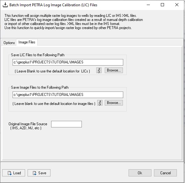 below each Save box to populate the box with the default location in the Petra geoplus1 directory: c:\geoplus1\PROJECTS\PROJECTNAME\IMAGES