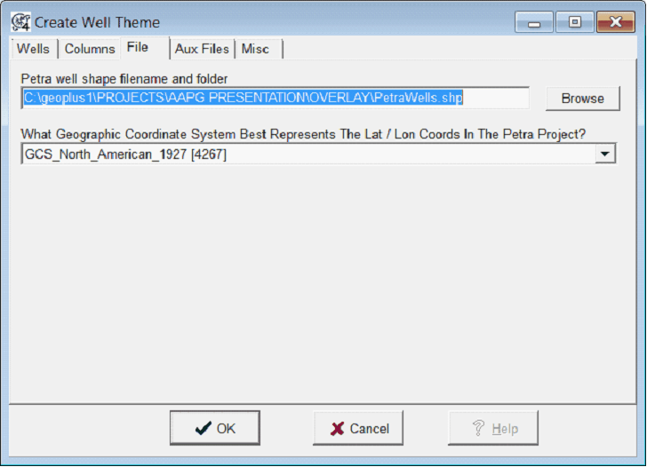 Petra well shape filename and folder - By default, this tool creates the well shape file in the the Petra project Overlay folder.