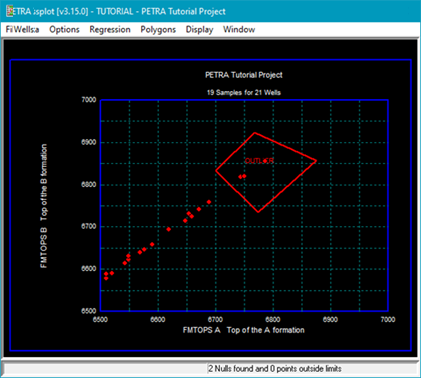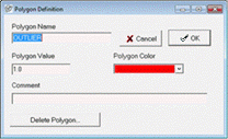 Z Crossplot polygons outline different areas of the graph, separating wells that have specific z data relationships. Each polygon in the Z Crossplot Module can have its own name, color, and value. Polygon values don't have any effect in the Z Crossplot Module, but exist so that polygons can be shared with the Log Crossplot Module. Polygons allow the user to select wells based on a custom criteria rather than by simple data searches. Add a PolygonTo add a polygon: